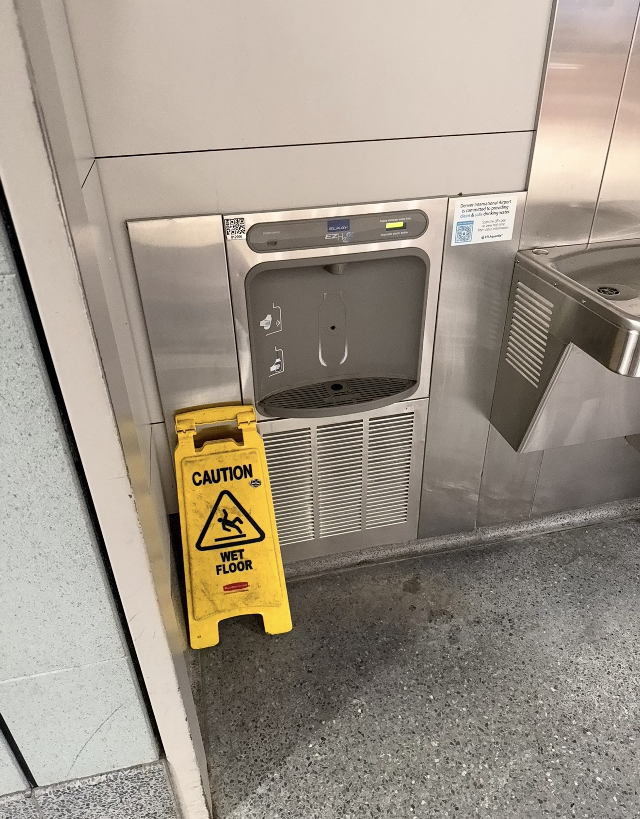 DEN Gate 38 Men’s Restroom shorter station to left of drinking fojntain